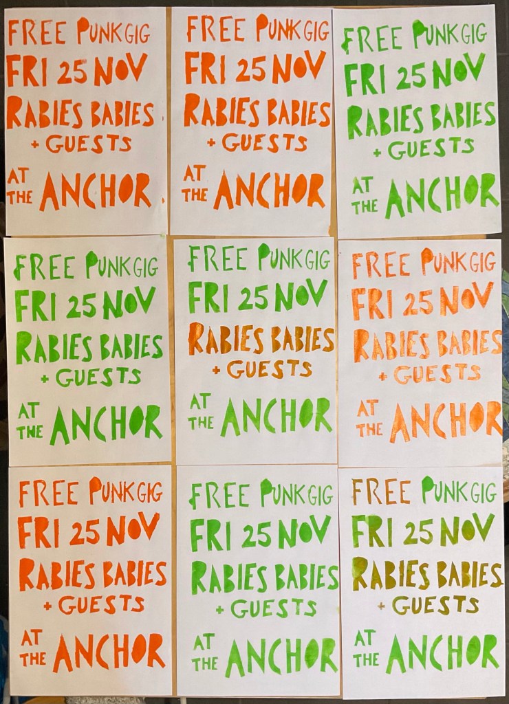 We’re playing a free gig at our fave pub the Anchor & Hope Clapton on Friday 25 November and we made DIY hand cut stencil posters to advertise it.