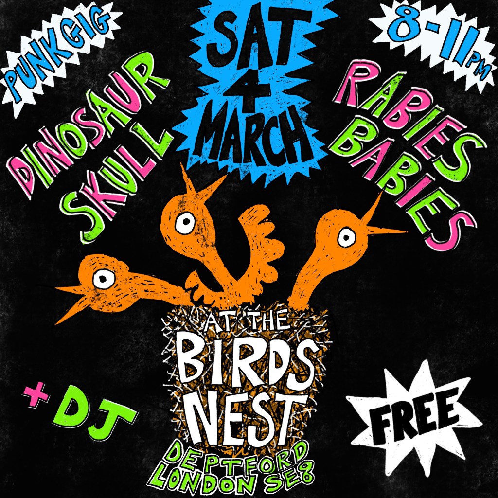 COMING SOON! in celebration of 25 years of playing gigs we have made a calendar featuring more than 140 gig flyers from the last 25 years. Relive those crazy Poison Club days, remember when there was decent shows at Chats Palace? Were you at the 2000 Punks Picnic? Did you hang out in the toilets at CBGBs 20 years ago? we can hardly remember any of it but we’ve got the flyers with our name on so we were probably there too! The calendar has QR codes on each month which link to exclusive extra content – photos, stories and gossip from the last 25 years of Rabies Babies. Only 100 copies printed, and they will be available at our next 3 gigs and a very limited amount on our bandcamp soon.